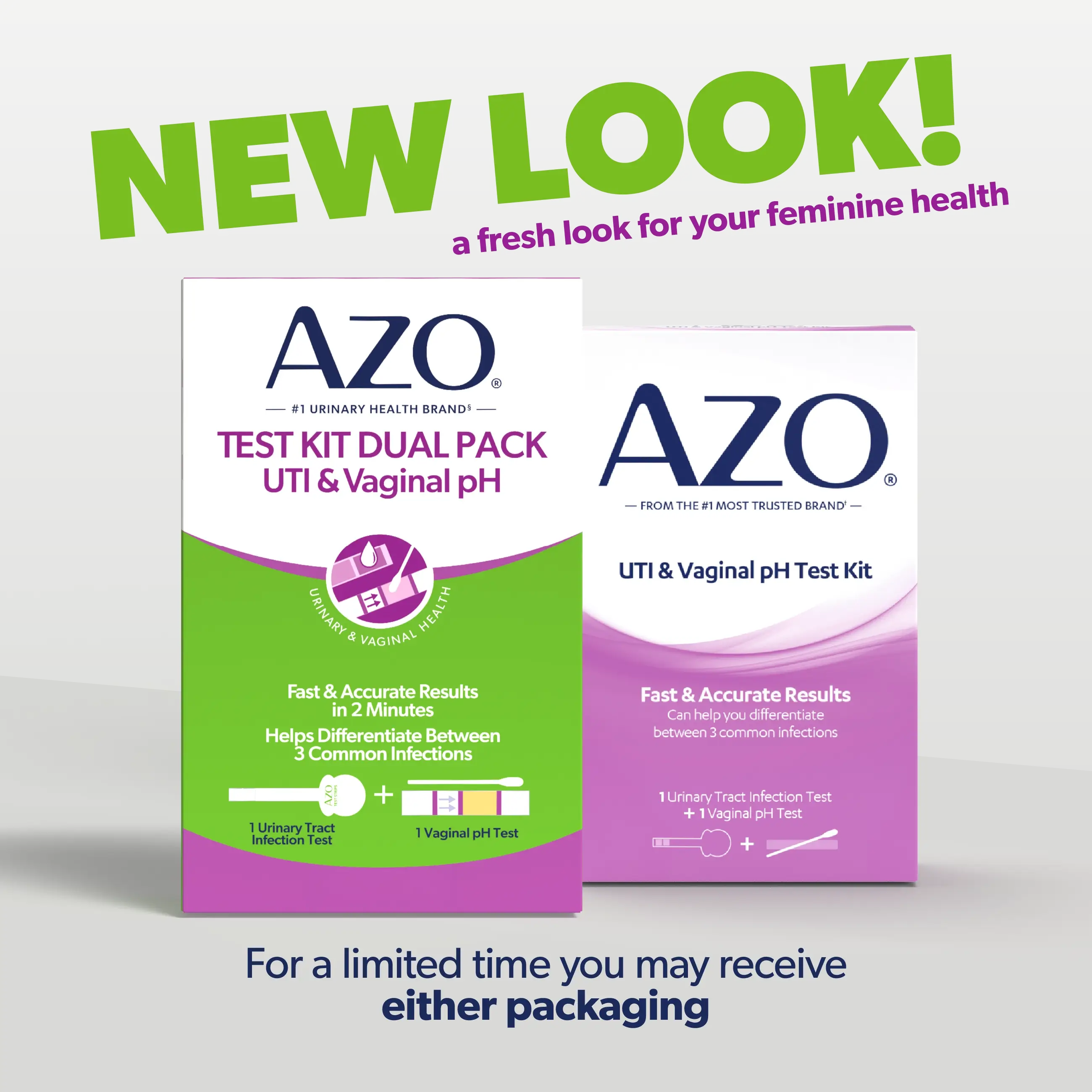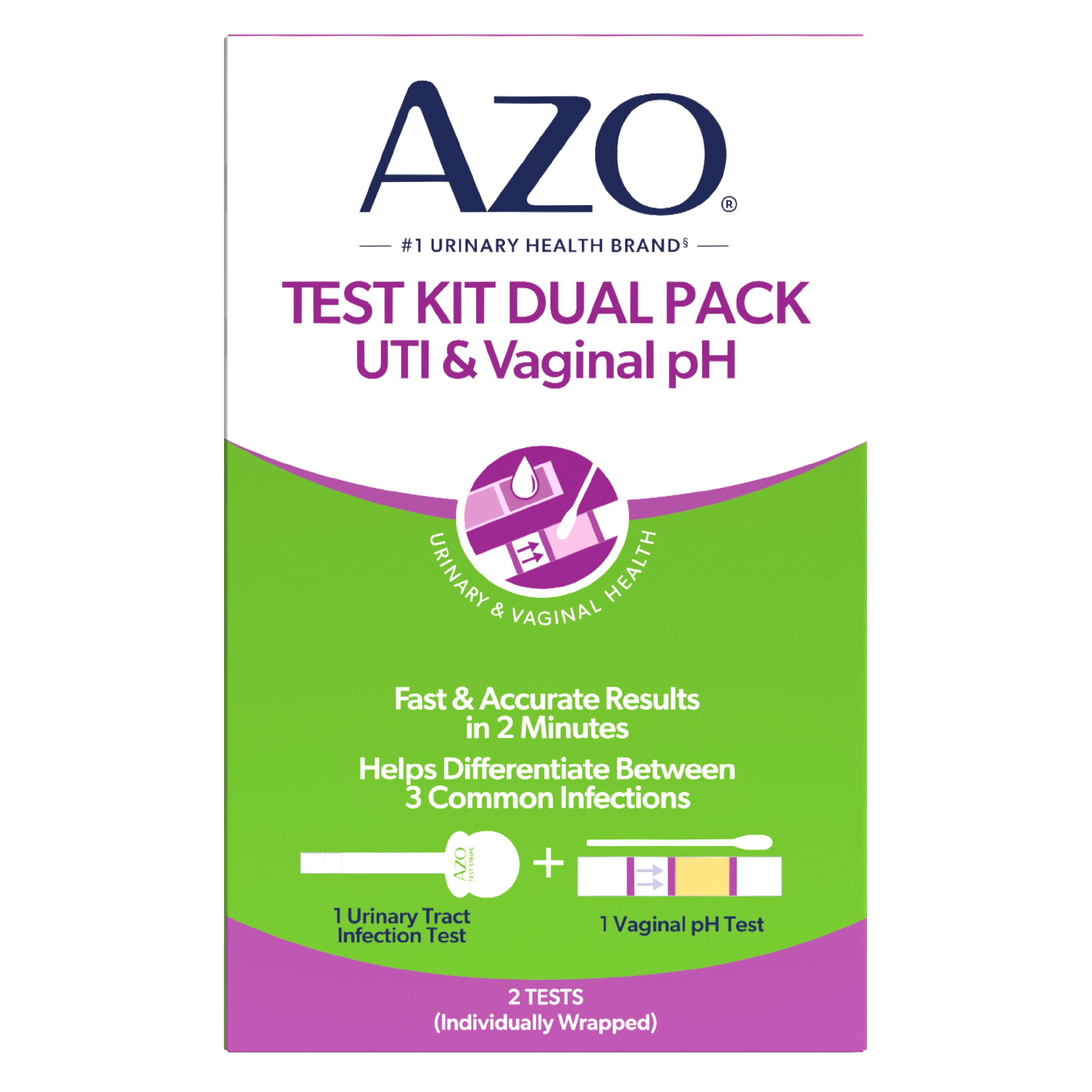 The AZO® UTI & Vaginal pH Test Kit contains two diagnostic tests that can help you determine in minutes if your symptoms may be related to a UTI, vaginal yeast infection or other vaginal infections.