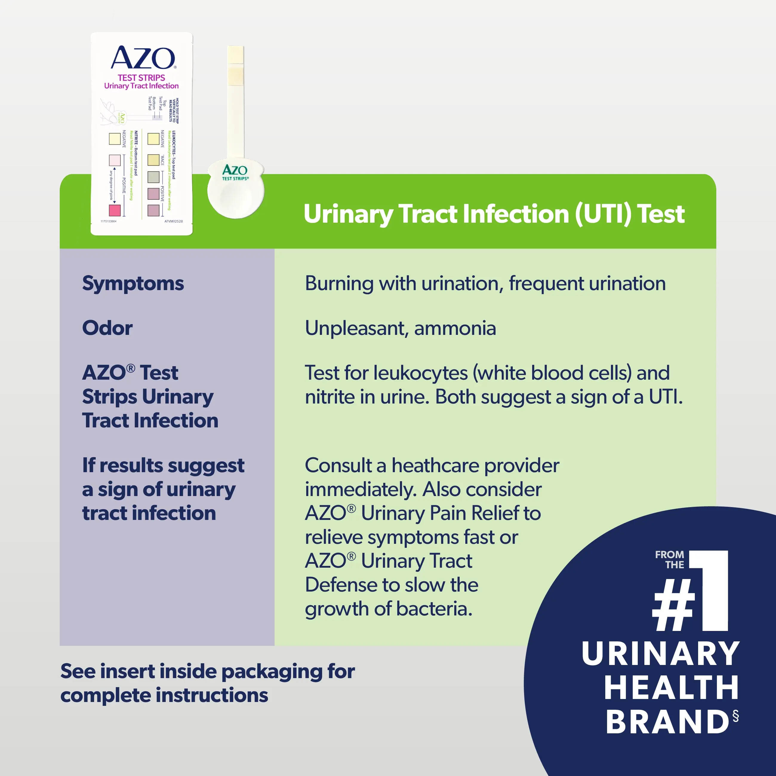 Your healthcare professional may recommend that you test your urine again after completing the antibiotic treatment. If the AZO®Test Strip is positive, contact your healthcare professional and always follow instructions for taking an antibiotic even if the strip result is negative.